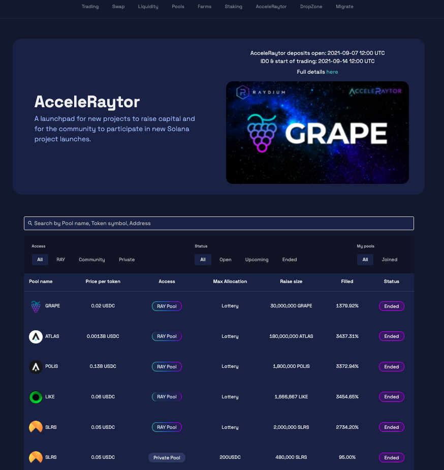 APY27.7%(RAYが増える)+ IDO参加権利(美味しい新規上場コインを格安で購入できるチャンス)AcceleRaytorから参加。参加条件がRAYのステーキングだったり、50RAY以上のステーキングだったりするので、50RAYステーキング。