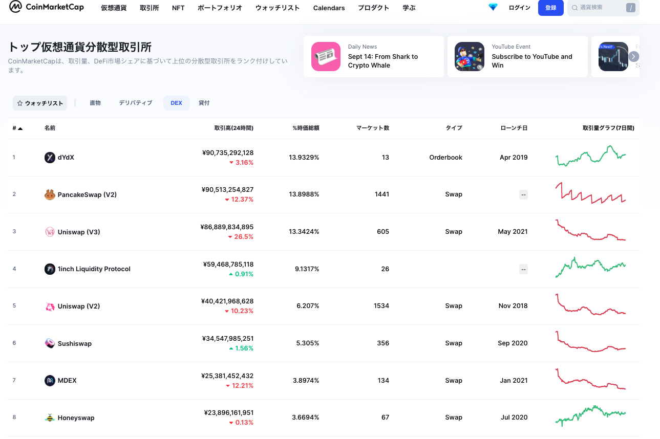 DEXランキングで既にパンケーキ、ユニスワップと肩を並べている。(24h取引高なので瞬間風速のみかもしれないが)
