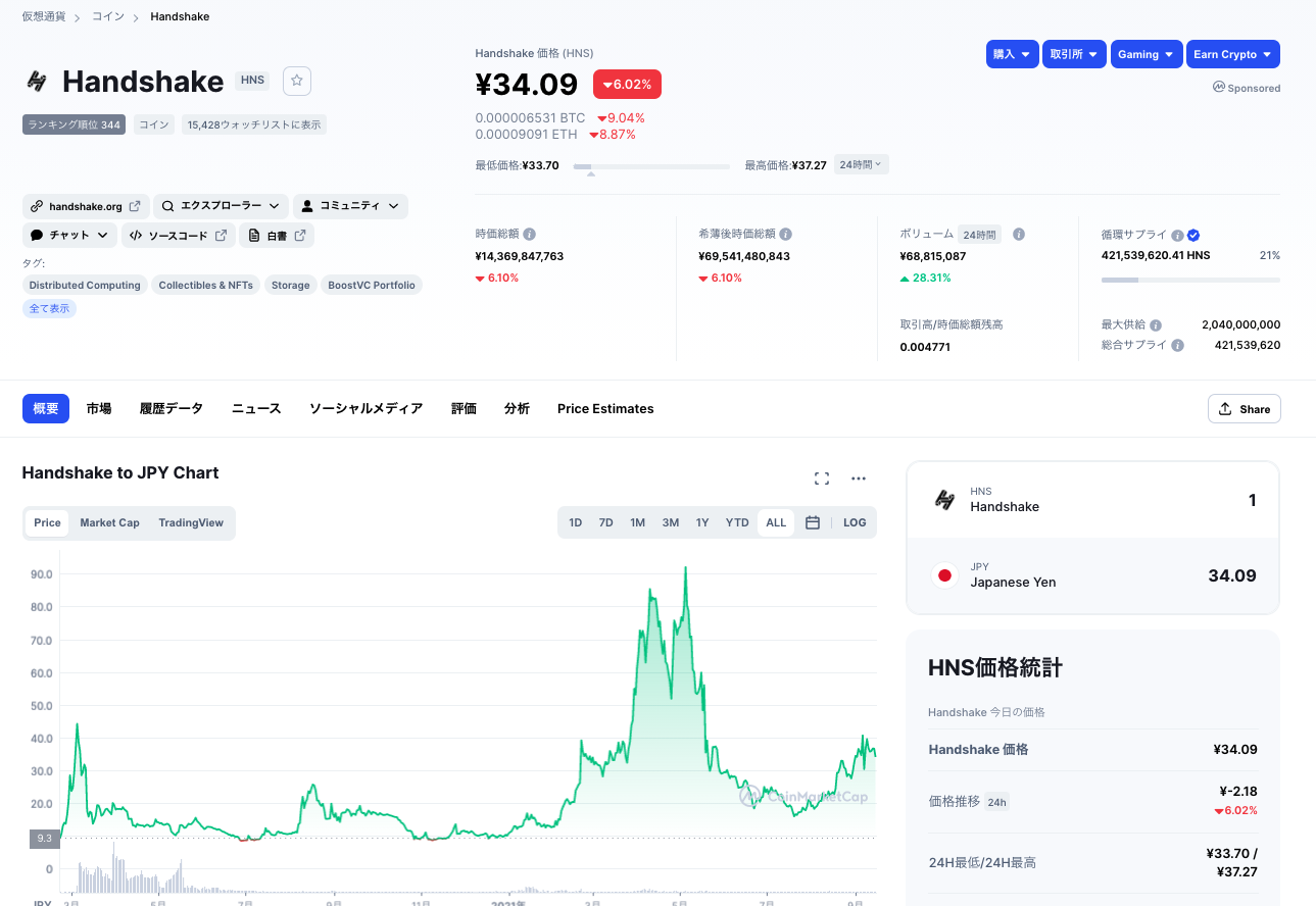 Handshakeとは、Webサイトのアドレス(URL)を非中央集権的な仕組みで所有、取引できる仮想通貨プロジェクト。